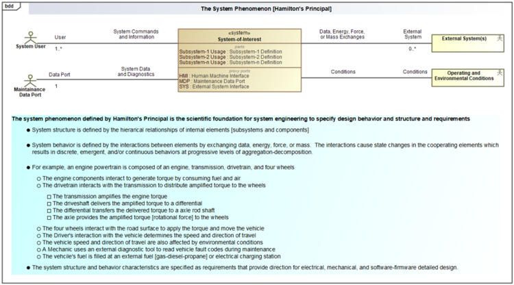 The SE&M model-based system design approach has a theoretical scientific foundation based on the system phenomenon defined by Hamilton’s Principle: a system is composed of hierarchical elements which interact by exchanging data, energy, force, or mass to modify the state of cooperating elements resulting in emergent, discrete, or continuous behaviors at progressive levels of aggregation or decomposition as shown in Figure 4.