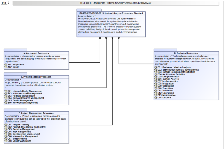 MBSE enhances the ability to capture, analyze, share, and manage authoritative information associated with the complete specification of a product compared to traditional document-based approaches. MBSE provides the capability to consolidate information in an accessible, centralized source, enabling partial or complete automation of many systems engineering processes, and facilitating interactive representation of system components and behaviors. The legacy SE&M materials are all impacted by the adoption of MBSE practices, and the SEBoK is updating its materials accordingly to reflect best practices and principles in an integrated model-based engineering environment. The updated materials to specify system behavior and structure characteristics with traceability to the associated requirements are organized in accordance with the ISO/IEC/IEEE-15288:2015 Systems Lifecycle Processes Standard shown in the figure below.